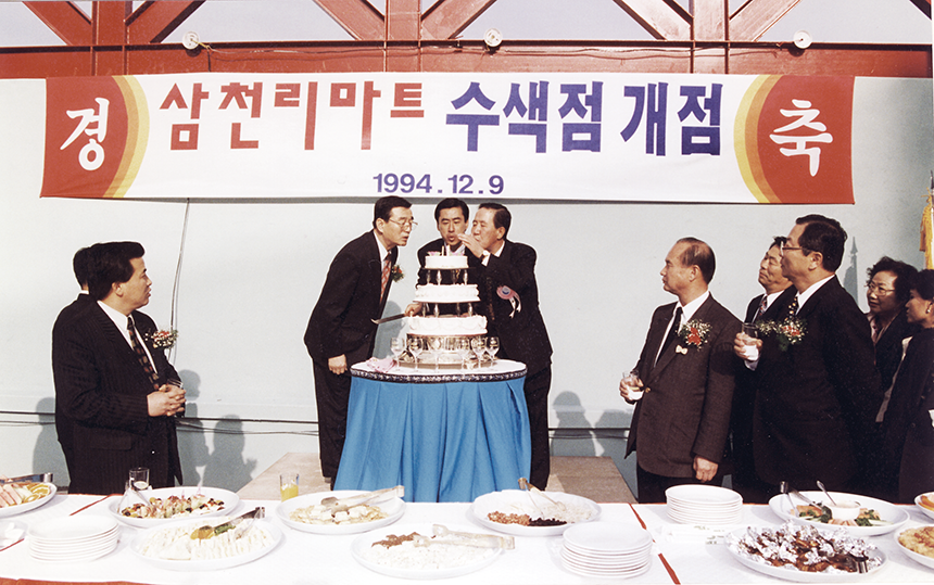 유통사업에서도 철수를 결정했다. 삼천리는 1993년 3월 1일 조직개편에서 유통사업본부를 신설하여 유통사업에 진출했었다. 당시에는 신세계가 국내 최초의 할인 양판점인 이마트를 개설하는 등 굴지의 대기업들도 앞다퉈 유통사업에 진출하던 때였다. 삼천리는 1992년 말 폐쇄한 수색공장 터에 삼천리마트 1호점인 수색점을 개설하여 유통사업을 시작했다. 오류공장과 시흥공장 부지 등 회사가 보유한 부동산을 활용하여 수년 내에 15개 점포를 운영한다는 계획도 수립했다.