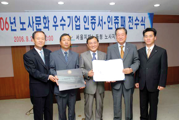 이처럼 안정적인 노사관계가 회사의 신인도를 높이고 고객의 신뢰를 깊게 하는 또 하나의 계기로 작용한 것은 명약관화 한 일이었다. 삼천리는 2006년 9월 26일 노동부로부터 노사문화 우수기업으로 선정돼 상생의 노사문화를 모범적으로 실천하는 기업임을 인정받았다.