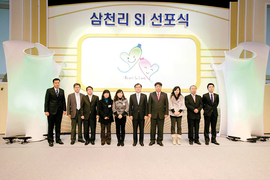 그런데 고객 접점의 CS 수준을 높이고 업계 최초로 서비스 품질 보증제도를 도입하는 등 고객행복을 위해 다양한 노력을 기울였지만, 사업영역이 확장함에 따라 더 강력한 CS 정책이 필요하게 되었다. 이에 삼천리는 2010년 1월 28일 임직원과 고객센터 대표단 등 700여 명이 참석한 가운데 수원대학교에서 ‘삼천리 SI 선포식’을 열고, 업계 최초로 SI(Service Identity), 즉 서비스 이미지 통합을 선포했다. 업계 특성상 사업권역 내에서는 소비자 유치 경쟁이 없는 도시가스사가 SI를 선포한 것은 이례적인 일이었다.