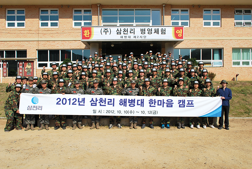 한편, 2012년 10월 10일 삼천리는 화합과 도전 정신을 강화한다는 취지에서 경기도 김포시 해병2사단을 찾아 2박3일 간의 ‘해병대 한마음 캠프’를 실시했다. 전 직급의 임직원을 골고루 섞어 100명씩 입소한 이 캠프 행사를 통해 참가자들은 고된 훈련 속에서 동료애를 나누며 강인한 정신력을 배양했다. 이 캠프는 2013년에도 열렸다.