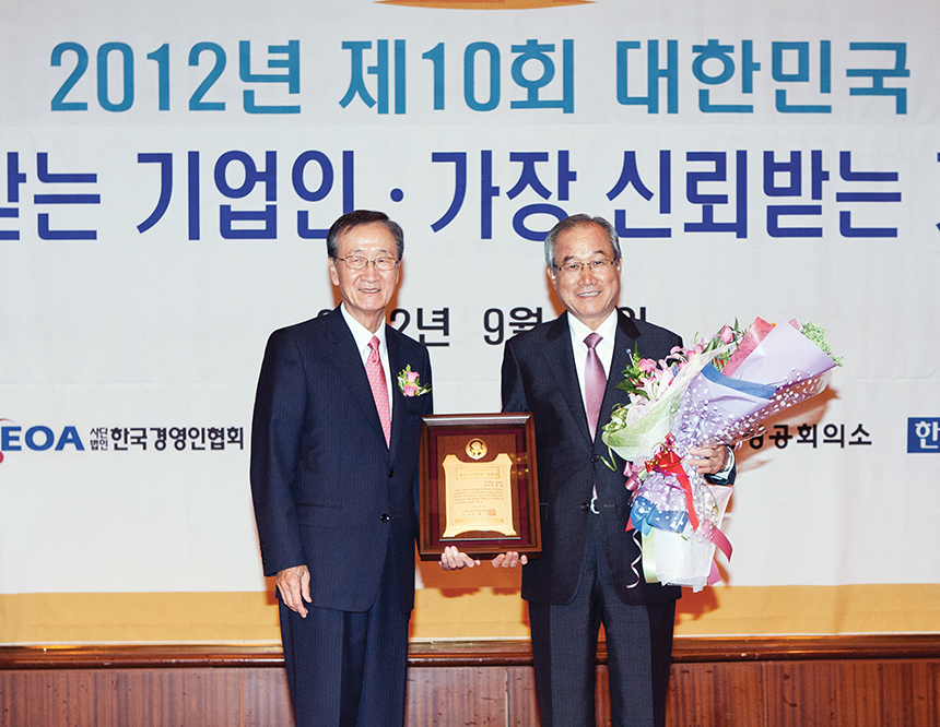 2012년 9월 17일에는 한준호 회장이 사단법인 한국경영인협회가 주최한 ‘2012 제10회 대한민국에서 가장 존경받는 기업인, 가장 신뢰받는 기업상’ 시상식에서 ‘가장 존경받는 기업인상’을 수상했다. 에너지 분야의 손꼽히는 전문가로서 2007년 삼천리와 인연을 맺은 이후 도시가스에서 집단에너지 사업, 민자 발전 사업으로 이어지는 사업다각화를 실현하고 해외자원개발 사업에서도 성과를 이끌어낸 점이 높은 평가를 받았다.