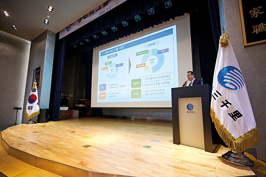 삼천리는 2023년 1월 2일 오산 기술연구소에서 신년 시무식을 열었다. 이날 시무식은 경영진의 신년사로 시작하던 예년과는 달리 ‘그룹 경영설명회’라는 형식을 빌려 경영진이 임직원에게 회사 현황과 방향성을 설명하고 직원들의 질문에 답변하는 형태로 진행되었다. 일방적 전달 방식을 지양하고 향후의 나아갈 방향을 공유하고 공감하는 양방향 소통에 초점을 맞춘 방식이었다. 변화를 추구하는 삼천리의 의지를 보여주는 또 하나의 단면이었다.