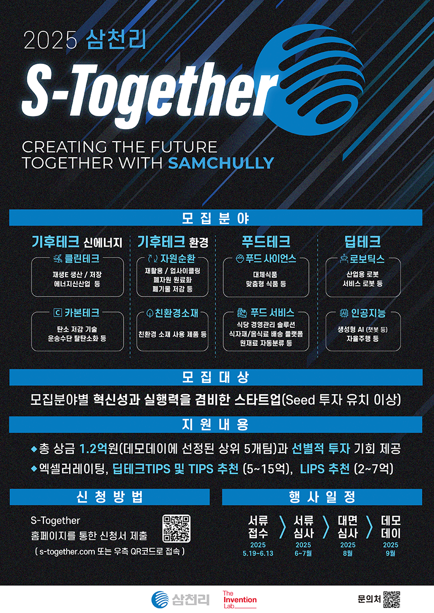 이듬해인 2025년 9월 30일, 두 번째 ‘S-Together’ 데모데이가 같은 장소에서 개최되었다. 전년보다 한층 전문화된 구성으로 확대되었으며, 기후테크(신에너지·환경), 딥테크, 푸드테크 3개 분야에서 약 200여 개의 스타트업이 지원해 두 배 이상 규모 면에서 확대되었다. 네트워킹 데이와 서류 및 대면 심사를 거쳐 태양광 발전용 지능형 인버터를 개발하는 ‘솔라라이즈’, 배터리 제조 스크랩을 재활용하는 ‘에이비알’, 촉매 기반 해중합 기술로 재생 플라스틱 원료를 생산하는 ‘플라시클’, 지능형 타이어 센서 기반 모빌리티 솔루션을 제공하는 ‘반프’, 인공지능 문서 자동 처리 서비스를 개발한 ‘한국딥러닝’, 조리로봇 기반 무인키친으로 K-푸드 사업을 전개하는 ‘신스타프리젠츠’ 등 6개 스타트업이 최종 본선에 올랐다.